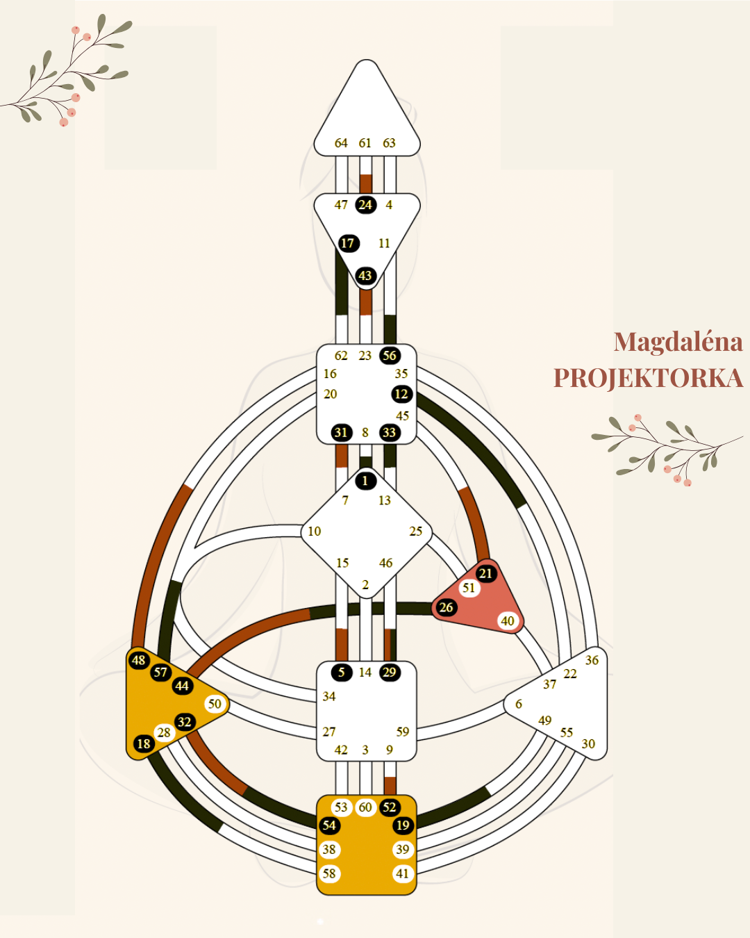 Mapa Human Designu je jako osobní manuál. Ukazuje, jak funguje tvoje energie, v čem spočívají tvé dary a talenty a zároveň pojmenovává výzvy, se kterými se můžeš v životě setkávat - i pasti, do kterých máš tendenci padat.